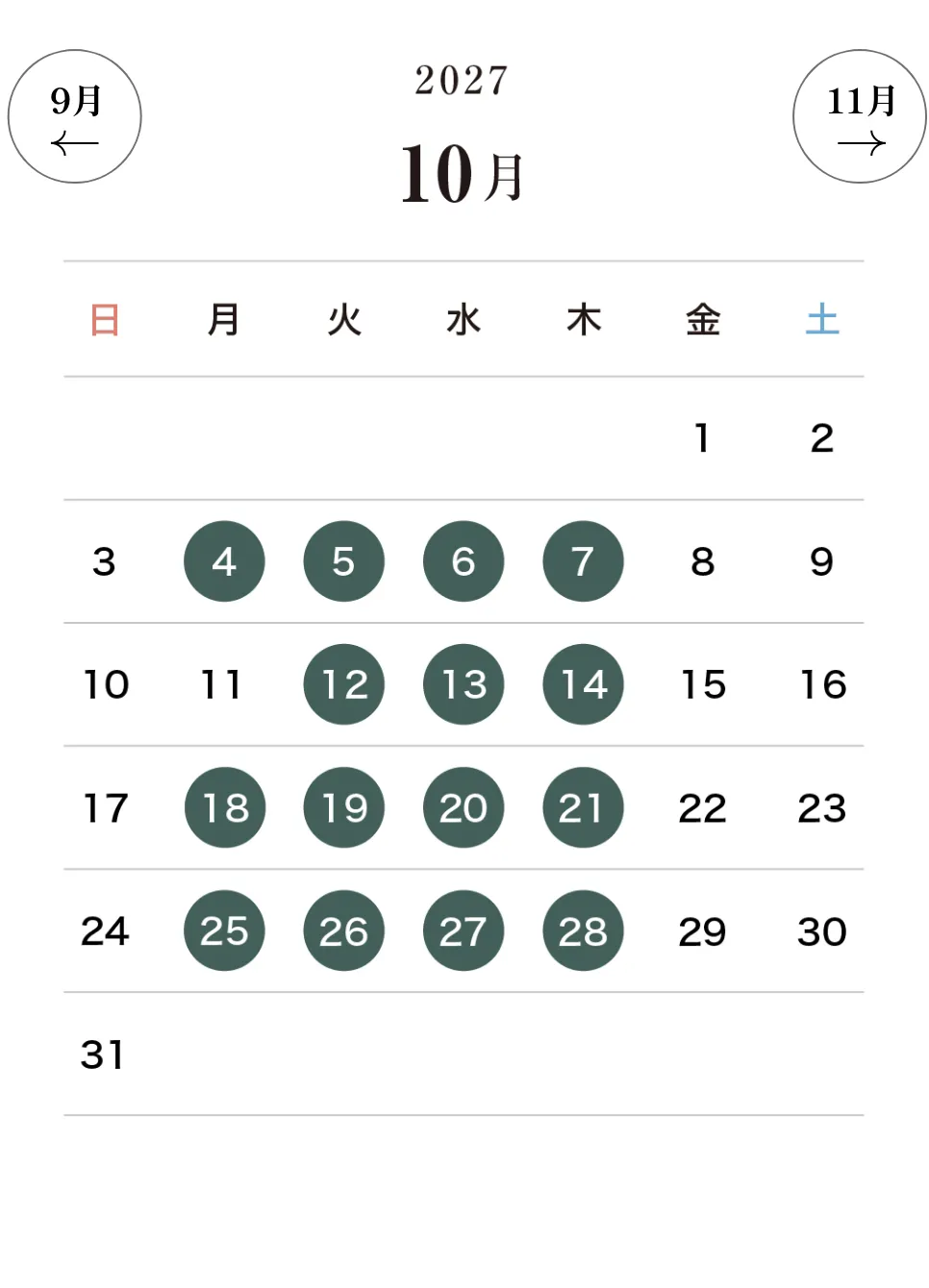 宿泊対象日カレンダーを見る