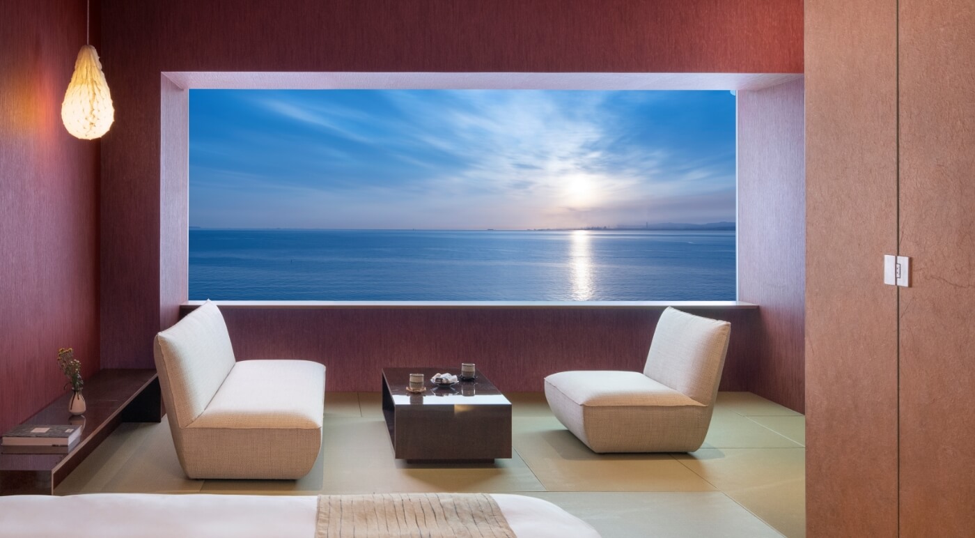 客室の茶器など、館内の随所で味わえる臼杵焼の美。