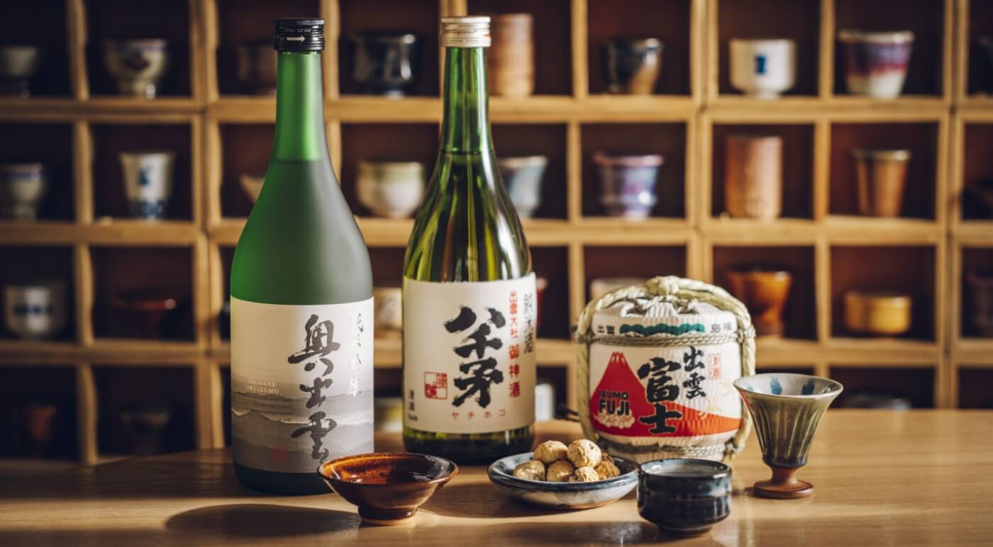 - お酒の神様を祀る「佐香神社(松尾神社)」の御膝元に位置する明治10年創業の老舗酒蔵。地元の材料を使った酒造りにこだわり、140年続く出雲杜氏としての技を継承。社員6名の小さな酒蔵ながら、普通酒に至るまで全量島根県産のコメを使い、出雲杜氏の腕によってすべて手造りで約30種の日本酒を醸している。