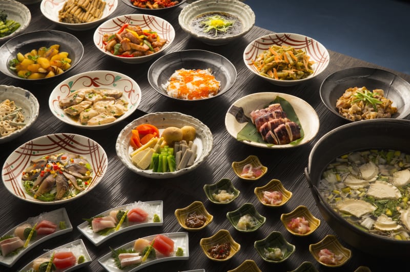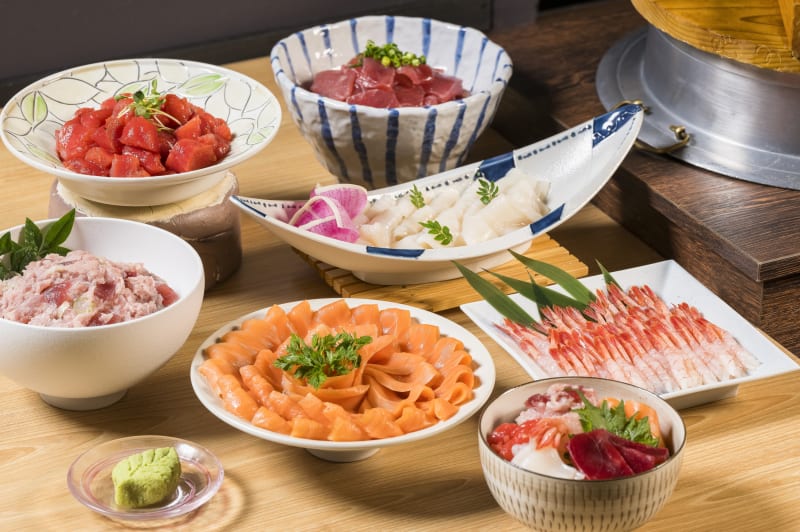 아침 속을 부드럽게 달래 주는 수많은 시골 요리들이 준비되어 있습니다. 밥 위에 자기가 좋아하는 회를 원하는 만큼 올려서 만드는 ‘우메자돈’이 인기 메뉴입니다.