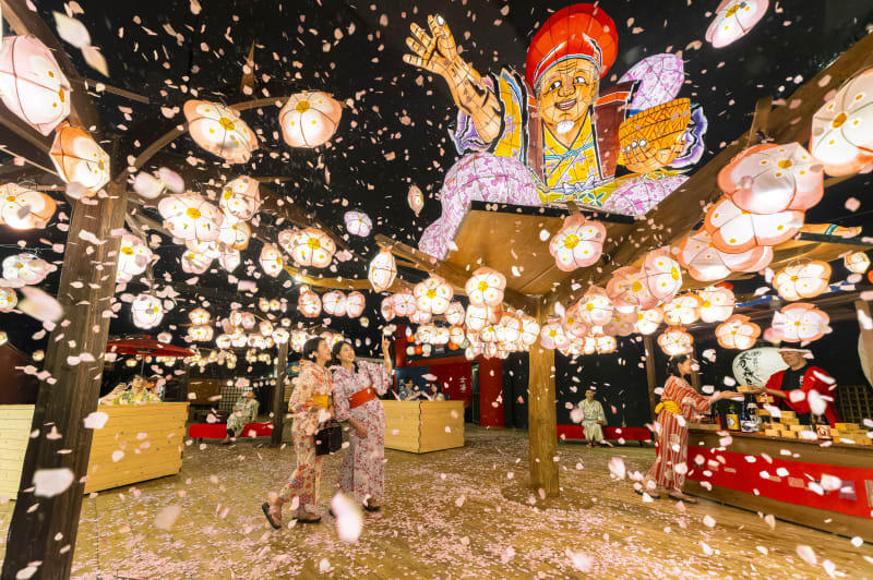 쇼와 시대의 복고적인 분위기가 풍기는 광장에서 계절별로 이벤트가 열립니다. 풍부한 색채의 등불로 채색되어 있어서, 걷기만 해도 두근거리는 공간입니다.