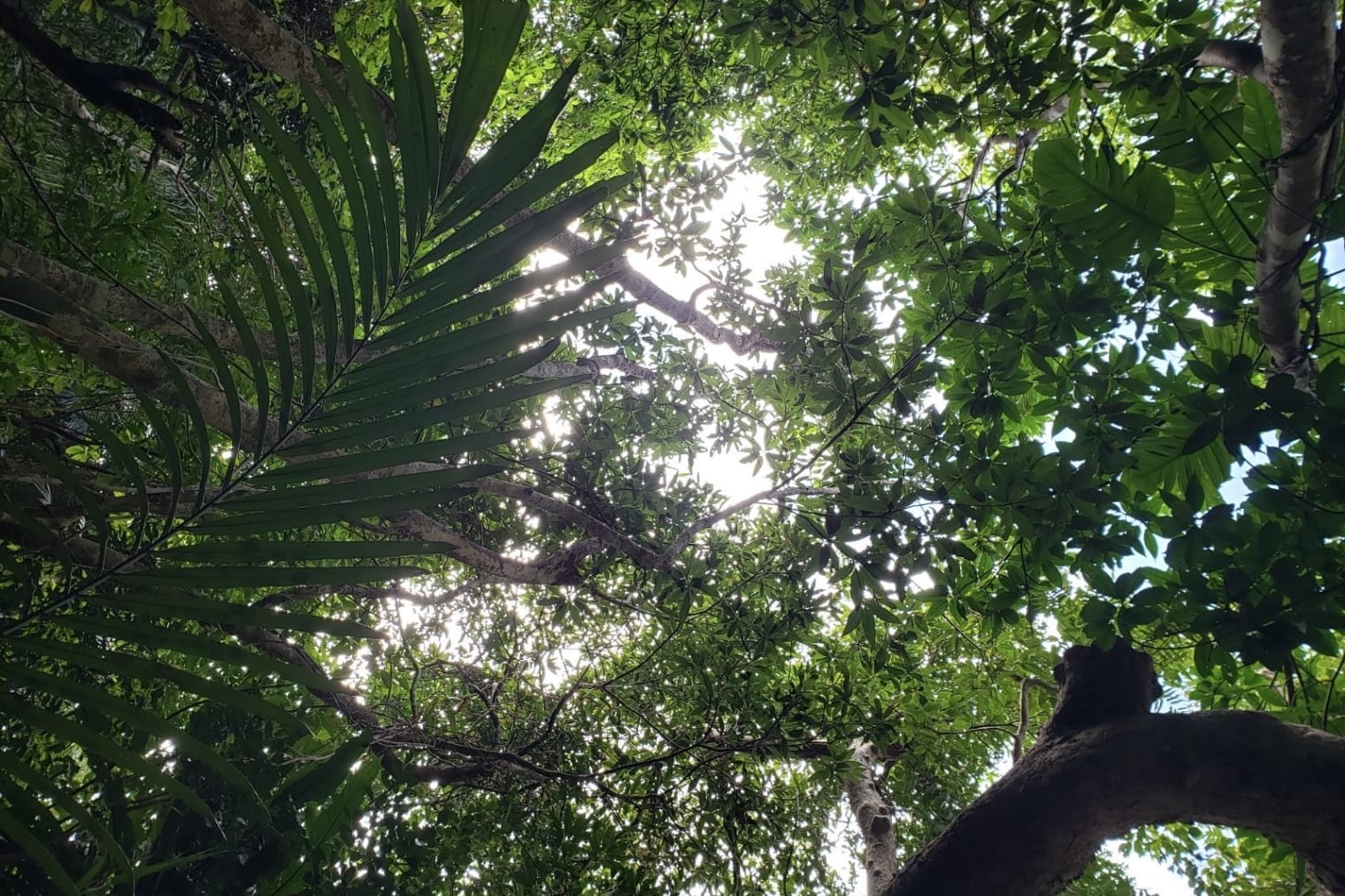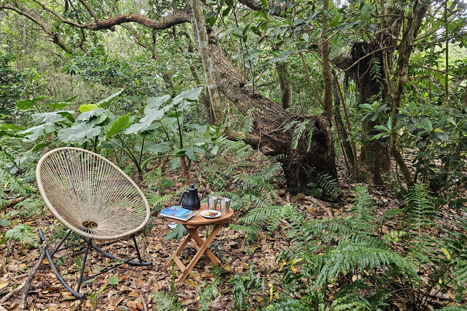 남국 새들의 지저귐이 울려 퍼지는 평온한 아침의 정글. 커피 한 잔과 함께 새소리에 치유되는 순간을 즐겨보세요.