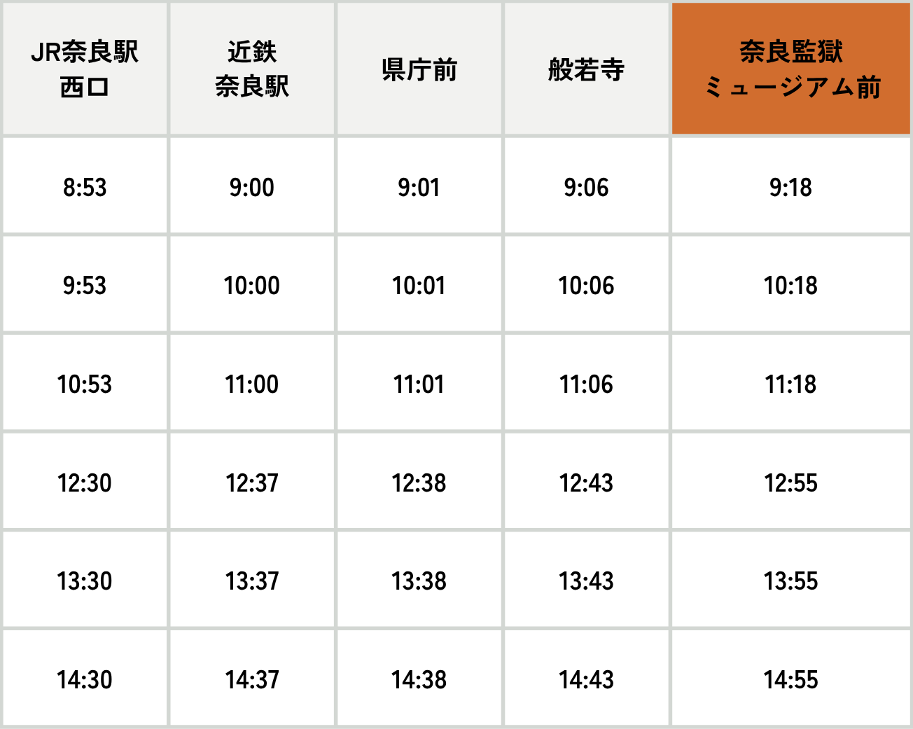 近鉄奈良駅(京都駅から特急で約40分)、JR奈良駅(大阪駅から大和路快速で約50分)