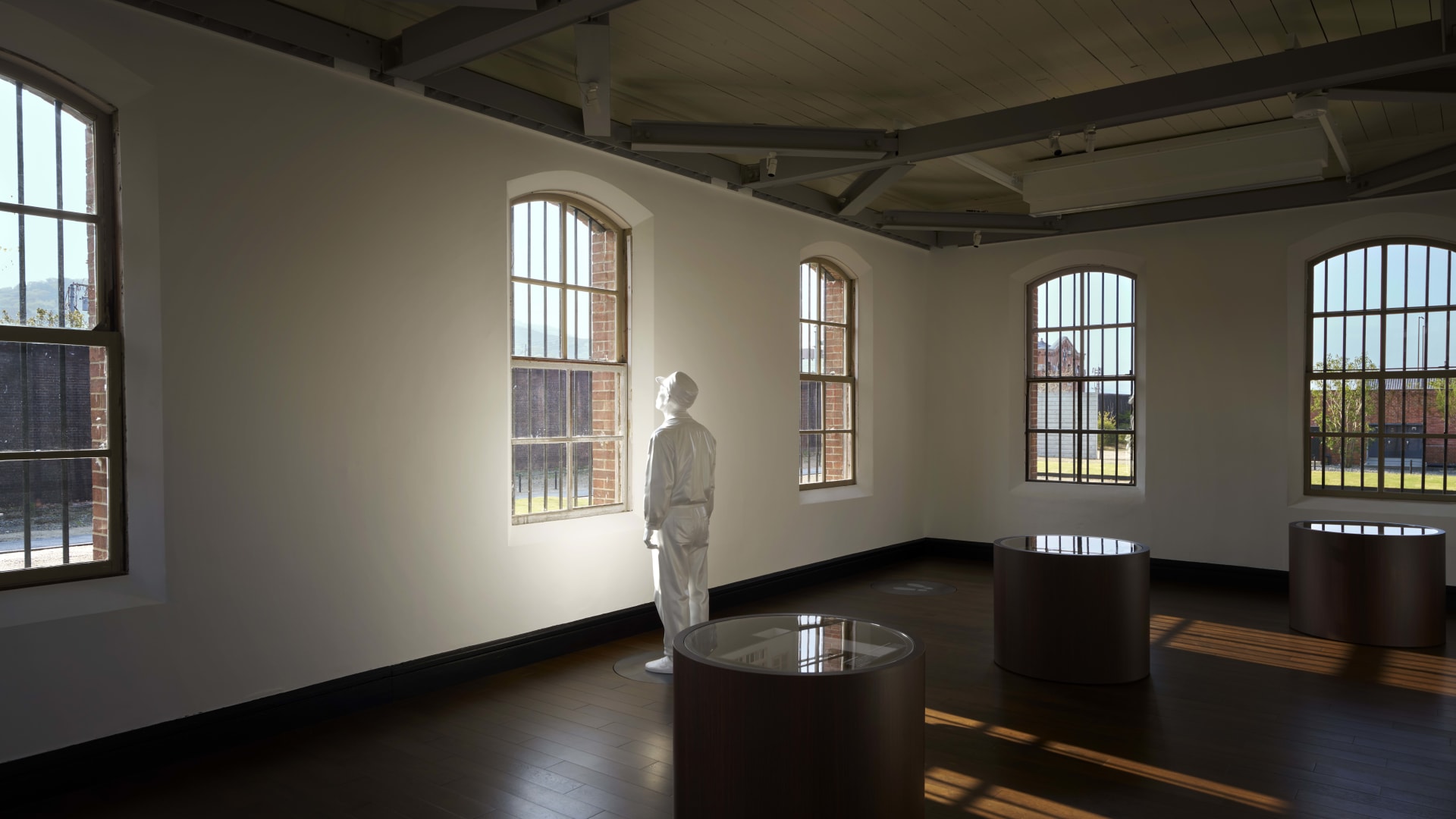 旧日医务楼蜕变为艺术空间。馆内陈列着五组艺术家凝视高墙现实的淬炼之作,与跨越铁窗的艺术企划。
