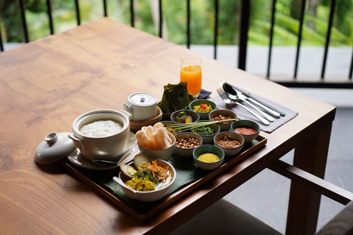 在仿佛漂浮于丛林之巅的“咖啡凉亭”中,我们以野餐形式为您呈现巴厘岛地道美食——黑米布丁(Bubur Injin)及新鲜沙拉。在云端绿意中开启充满活力的一天。