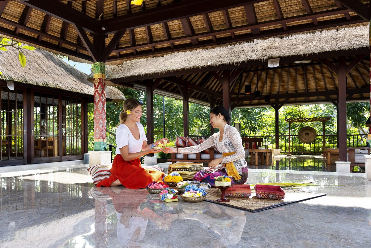 巴厘岛传统手作体验 巴厘岛民多信仰巴厘印度教,每日都会敬献名为“恰南 (Canang)”的祭品。您可以随度假村的女性职员一起,用花瓣与树叶亲手编织祭品。之后,换上巴厘岛正式服装,前往村内寺庙祈福献祭。这是一场触碰巴厘岛灵魂的文化体验。