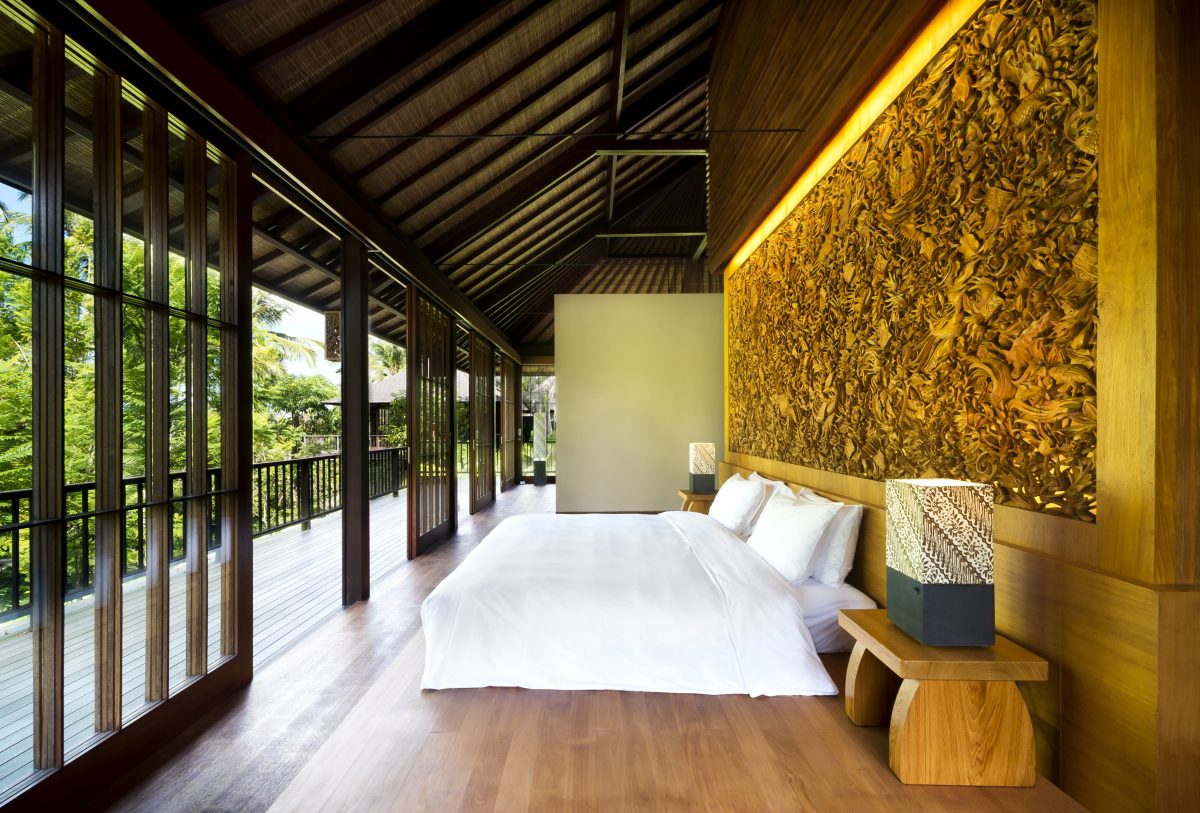 作为源自日本的奢华度假品牌,“虹夕诺雅”在巴厘岛的客室设计中实现了本土文化与东洋美学的完美调和。在这里,您可以邂逅精美的手工木雕、蜡染(Batik)等巴厘岛传统工艺与艺术;同时,简洁的木格子窗、朦胧的行灯光影以及极具留白之美的空间布局,又处处彰显着静谧内敛的日式底蕴。