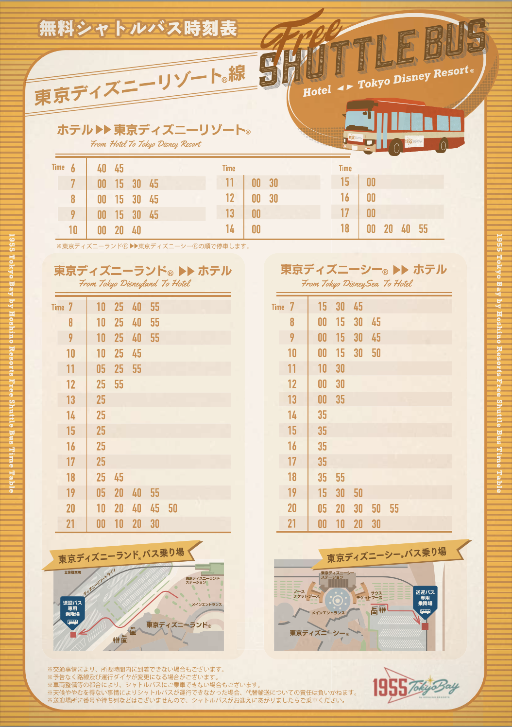 提供往返於酒店與東京迪士尼樂園®、東京迪士尼海洋®之間的免費接送巴士。