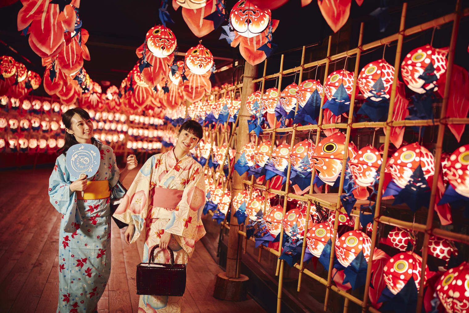 為您準備了夏季限定的華麗浴衣。穿上代表日本夏季的「金魚圖案」浴衣盡情打扮,在館內盡情感受夏日祭典的熱烈氛圍。