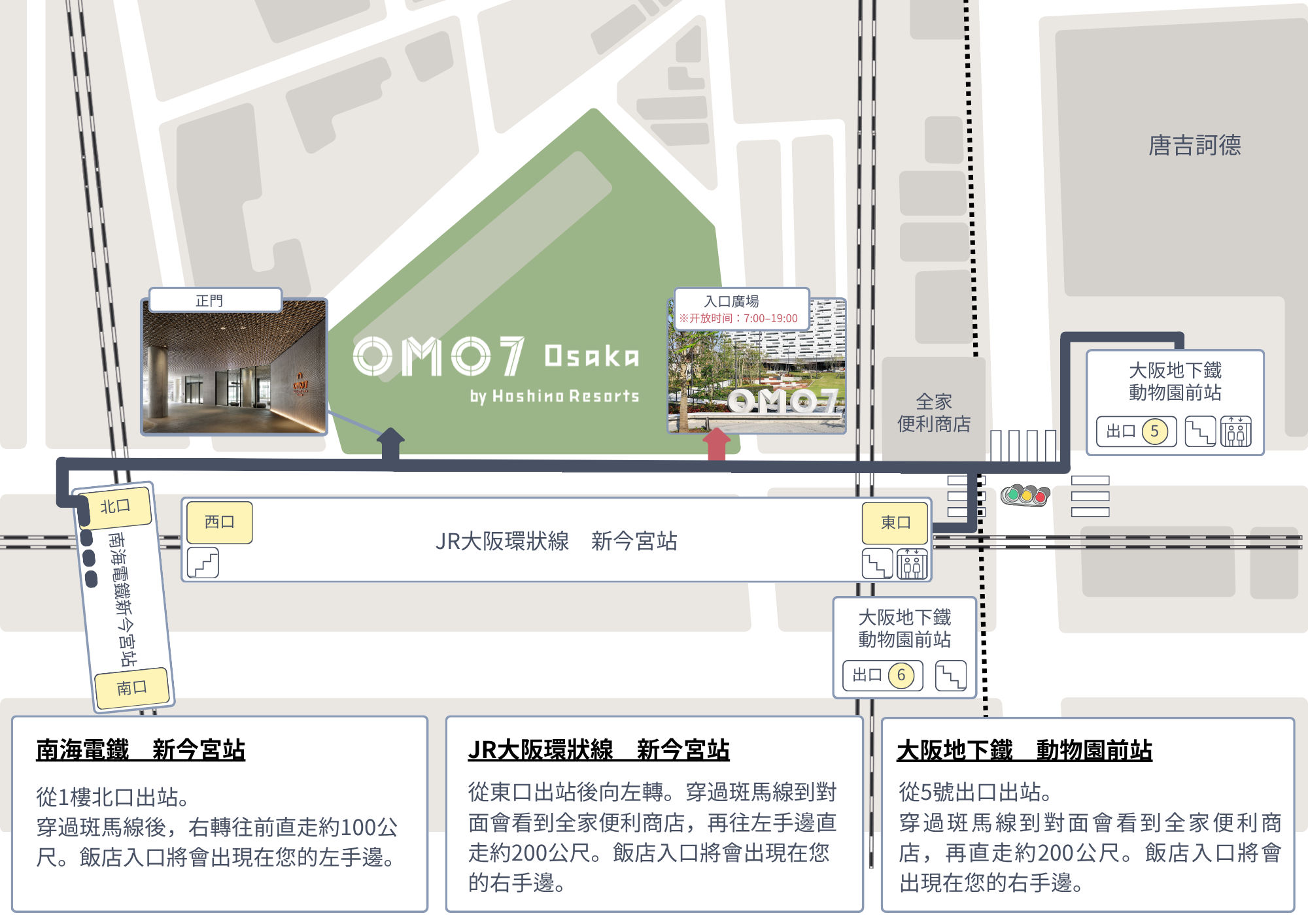 ・從 JR「新大阪」站搭到「大阪」站,轉乘大阪環狀線到「新今宮」站車程約 20 分 飯店就位於「新今宮」站前