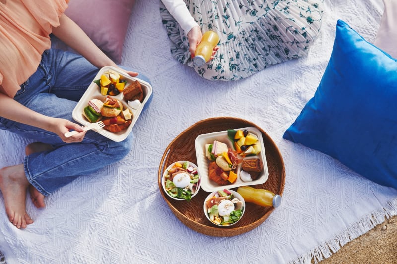自助早餐可以品嘗到使用了黑糖的法式吐司和南國的稀有蔬菜和甜點。
