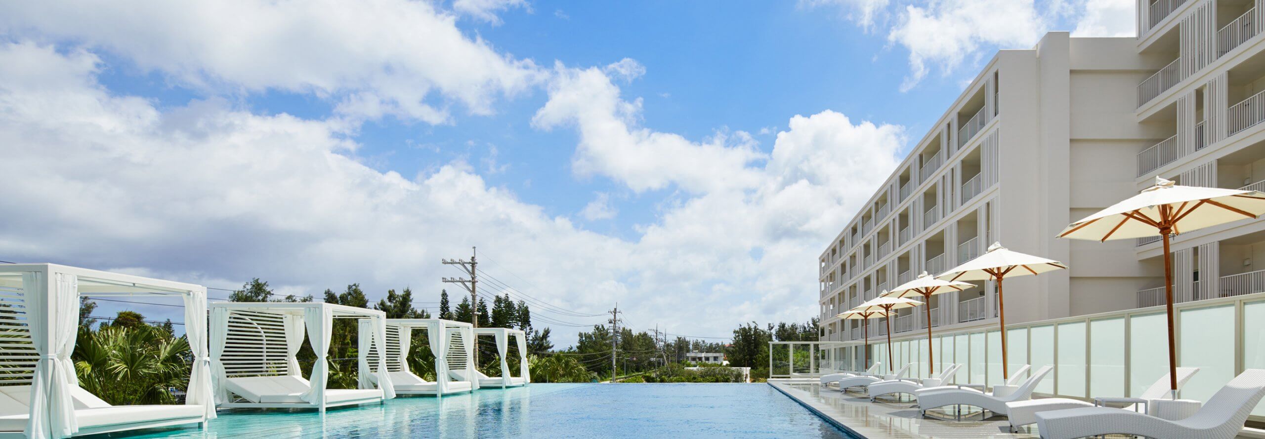 擁有從室內向外展開的寬闊休息區, 具有開放式泳池的輕鬆休閒型飯店。所有的客房皆設置了廚房、大型冰箱、陽台。當然到海邊的接送也不成問題!想騎單車、潛水、到山原(YANBARU)地區或美麗海水族館的組合也是非常推薦的行程!是個適合當作沖繩之旅據點的飯店。